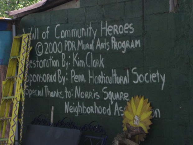 A sign detailing the creation of the community leaders mural